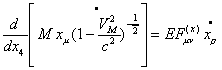which is nothing but the law of inertia in the special theory of relativity. In the presence of electro-magnetic fields, we get the equations