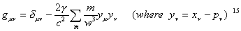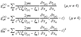 If we want to find the components of the tensor gu" which represent the gravitational field, we can get them after necessary calculations as follows:14